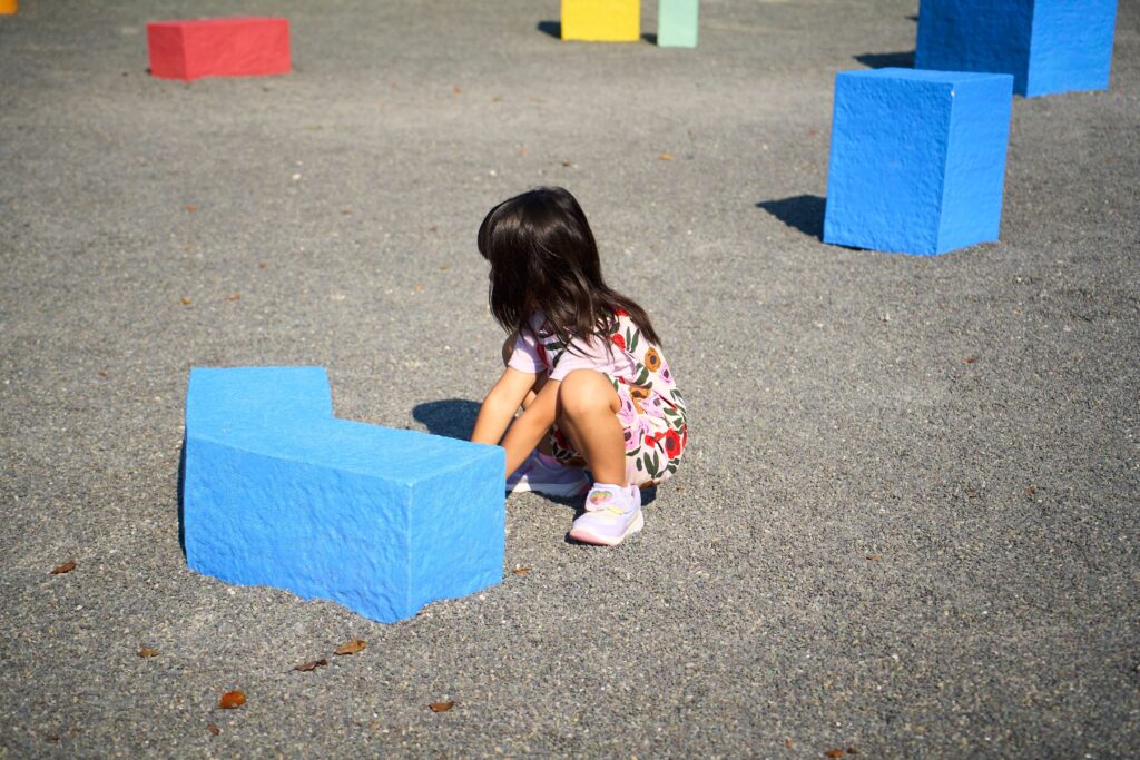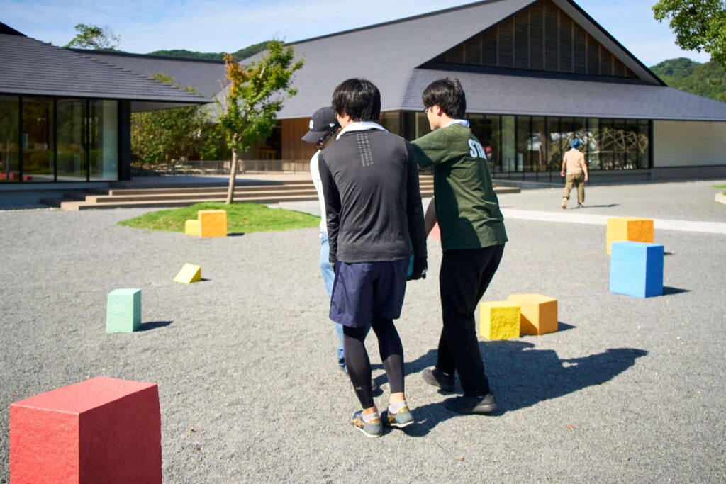 身体でふれることで、遊びの記憶とともに、「見る」ことの意味があらためて立ち上がるインスタレーションです。